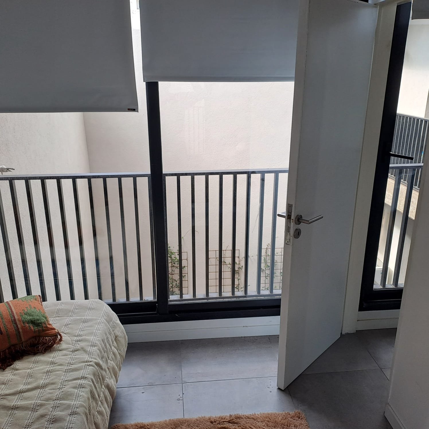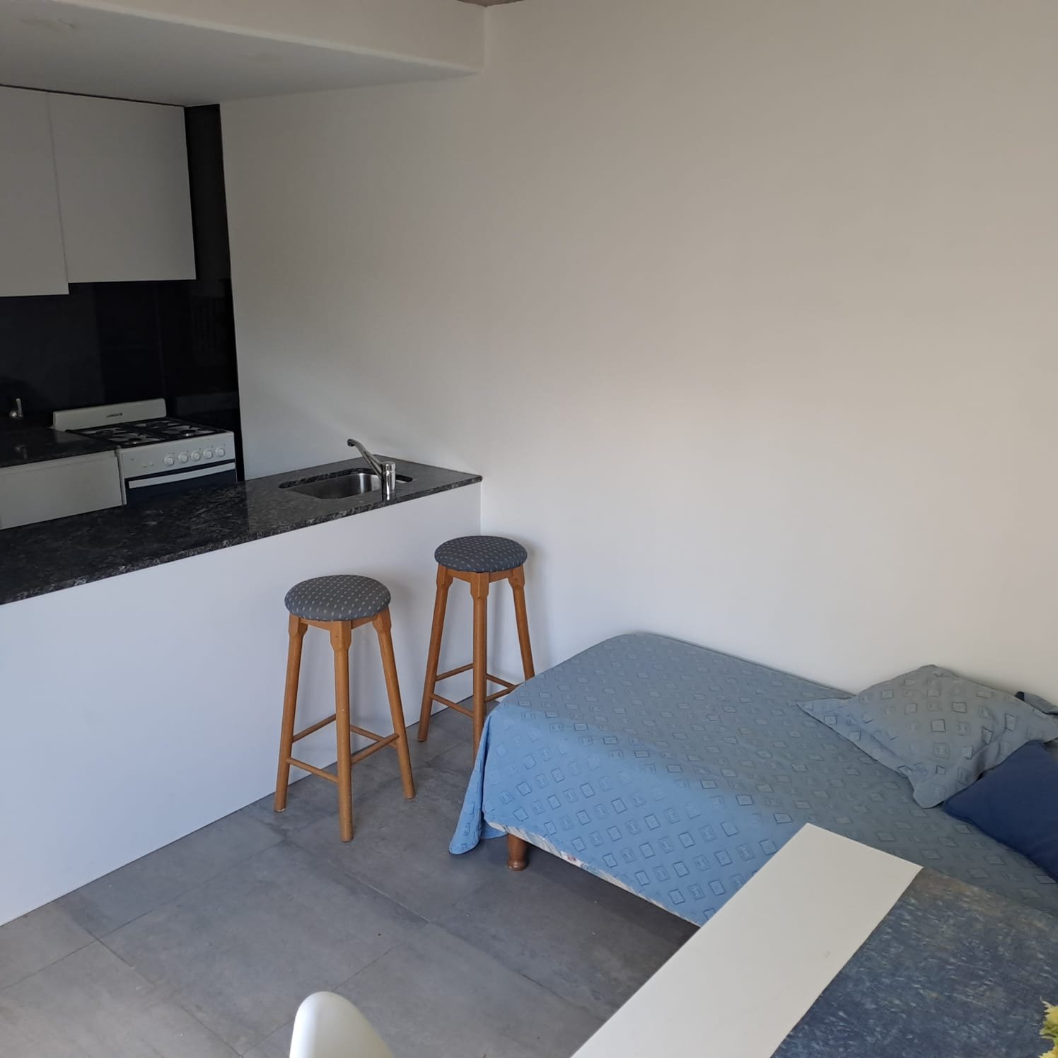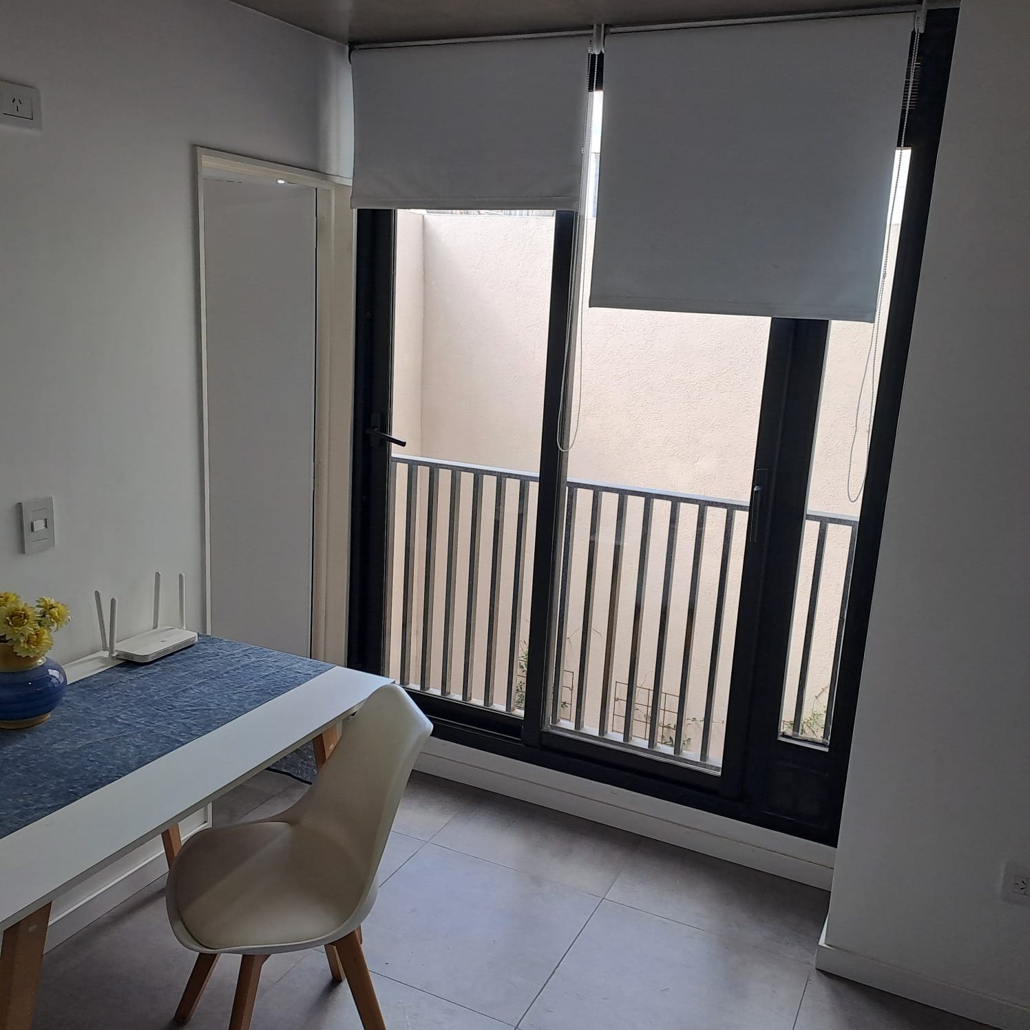 El departamento cuenta con amplio baño, cocina completa separada por barra desayunadora, habitacion con placard y doble balcón francés al norte. Ventanales con doble vidrio hermético, muy luminosos. Incluye cama en la habitacion. No incluye el resto del amoblamiento que se ve en fotos.