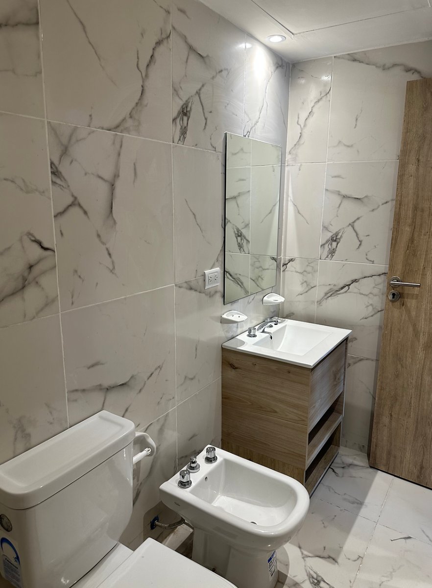 Las fotos corresponden a una obra terminada de la misma constructora. Terminaciones: aberturas de aluminio Modena, cocina completa con termotanque, pisos de porcelanato simil madera, cortina de enrollar de PVC, muebles de melamina y mesadas de marmol.
