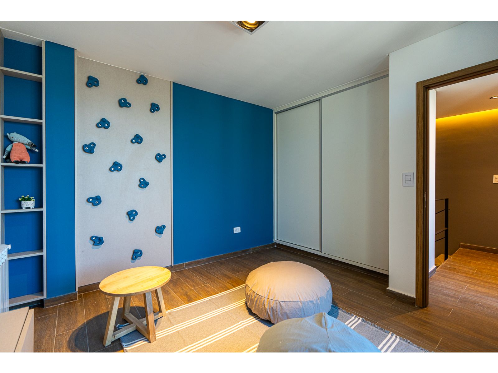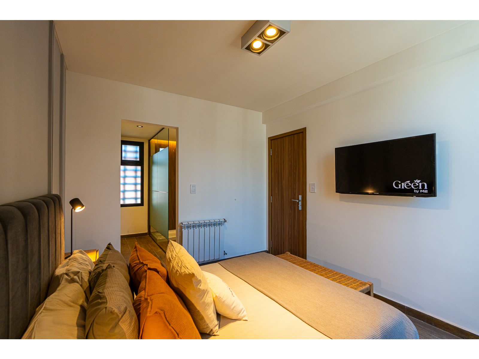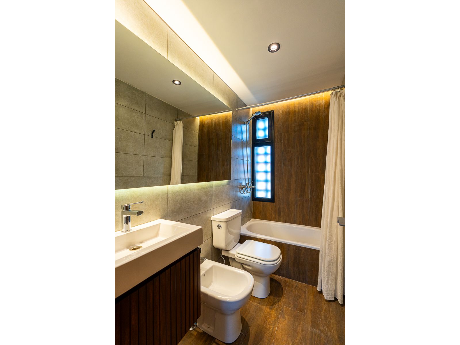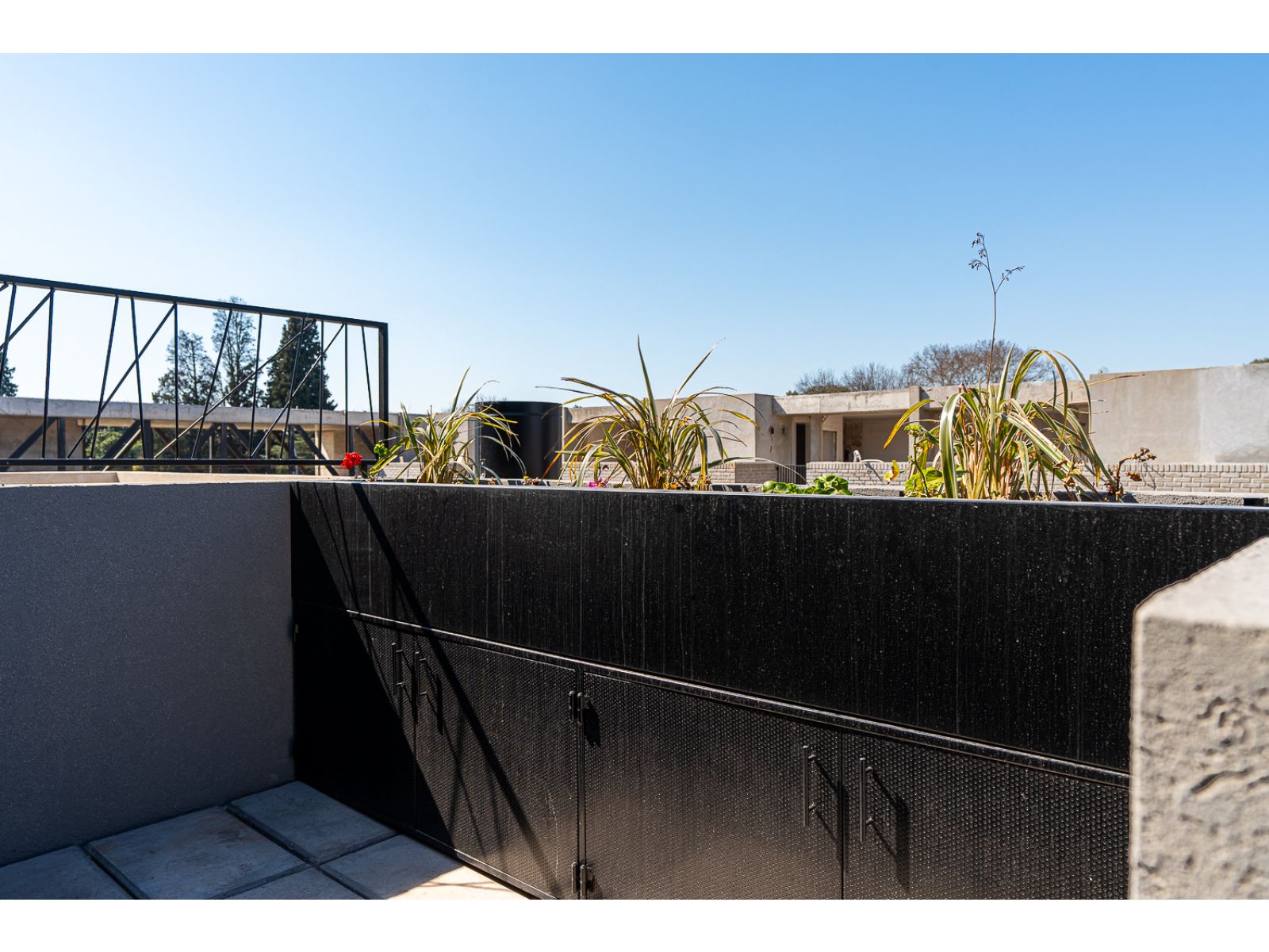 Circuito de seguridad perimetral con cámaras de vigilancia, control de seguridad en el ingreso, puertas de seguridad. Cerramientos de aluminio de alta prestación con DVH (doble vidriado hermético). Pisos y revestimientos de porcelanato. Sistema de caldera dual, para agua caliente y calefacción mediante radiadores, con termostato digital. Alacenas y bajo-mesadas de diseño en mdf laminado, zócalos de acero inoxidable. Bacha de acero inoxidable y griferías de diseño. Placares con frentes corredizos, equipados en sus interiores con divisiones, cajoneras y barral.