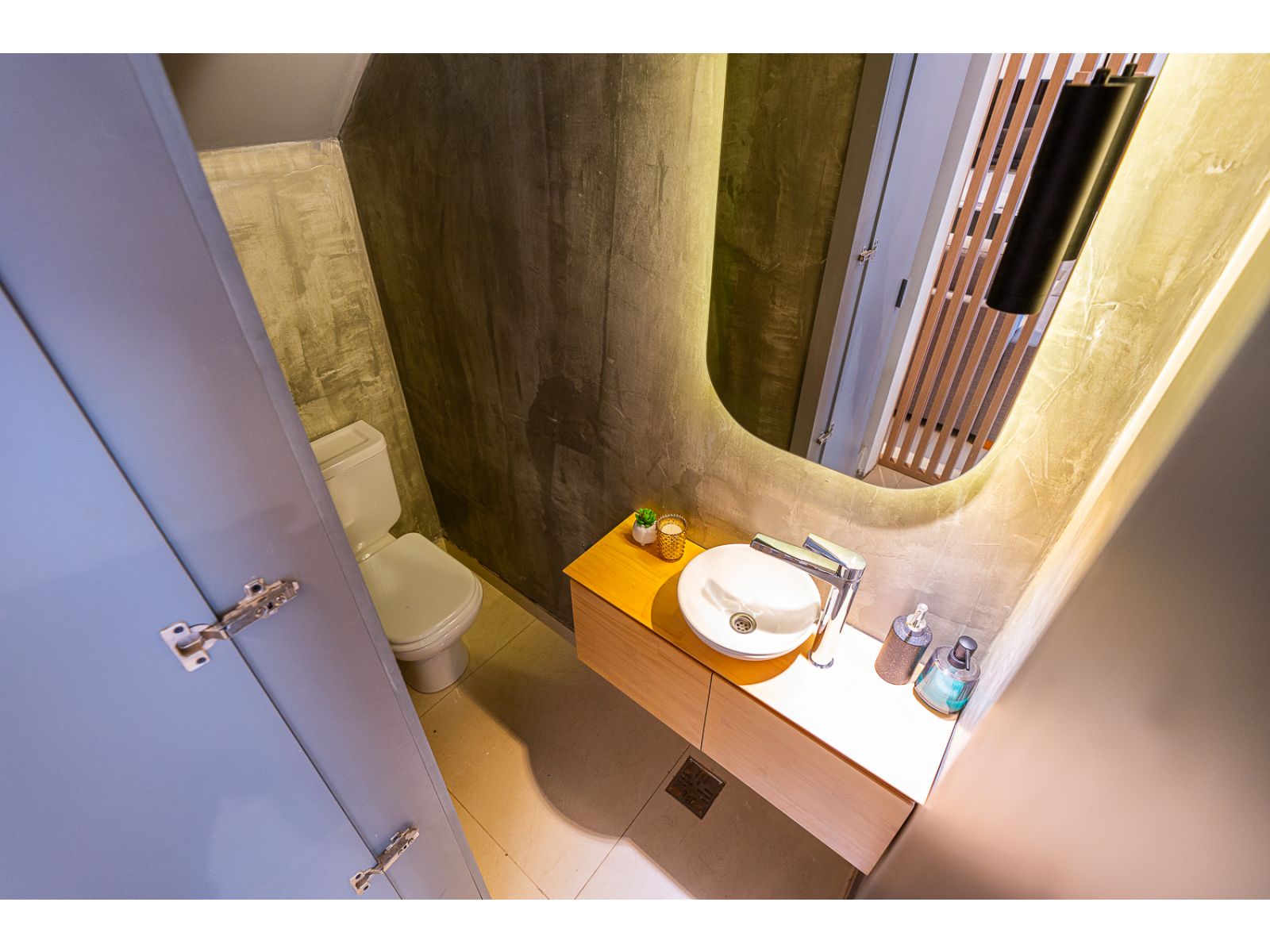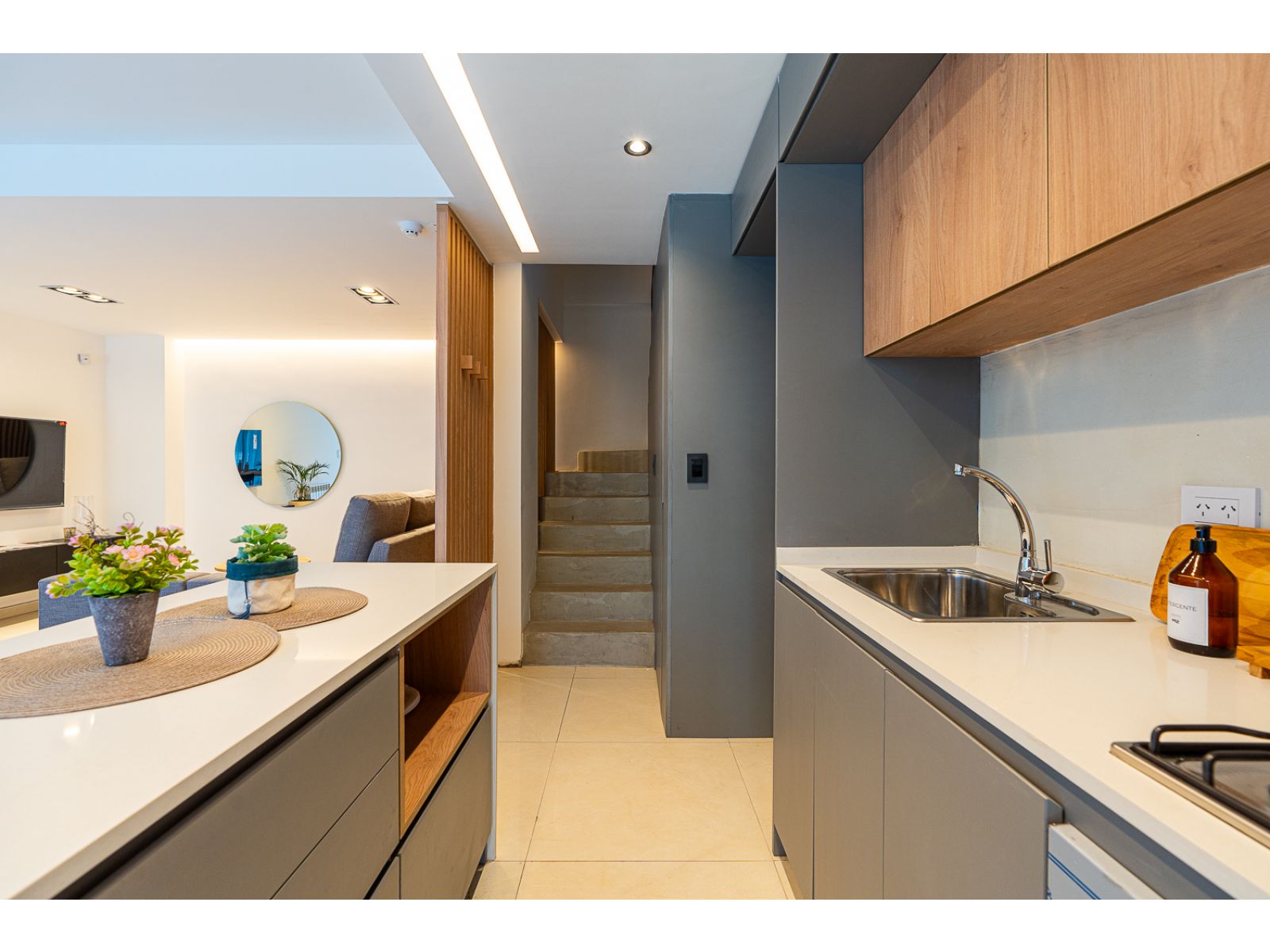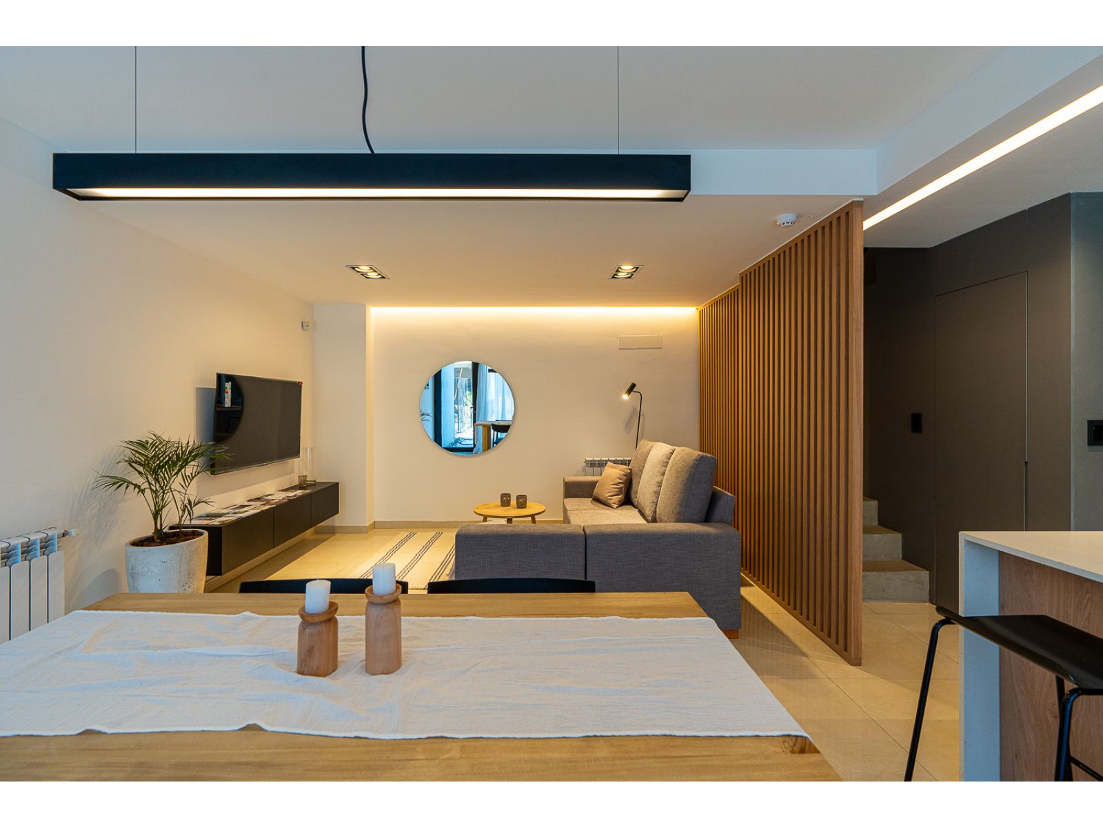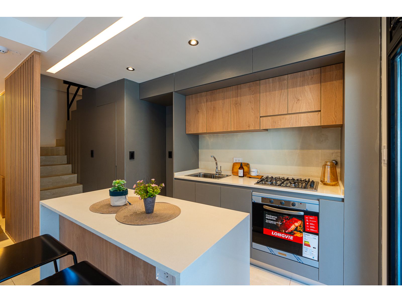 Circuito de seguridad perimetral con cámaras de vigilancia, control de seguridad en el ingreso, puertas de seguridad. Cerramientos de aluminio de alta prestación con DVH (doble vidriado hermético). Pisos y revestimientos de porcelanato. Sistema de caldera dual, para agua caliente y calefacción mediante radiadores, con termostato digital. Alacenas y bajo-mesadas de diseño en mdf laminado, zócalos de acero inoxidable. Bacha de acero inoxidable y griferías de diseño. Placares con frentes corredizos, equipados en sus interiores con divisiones, cajoneras y barral.