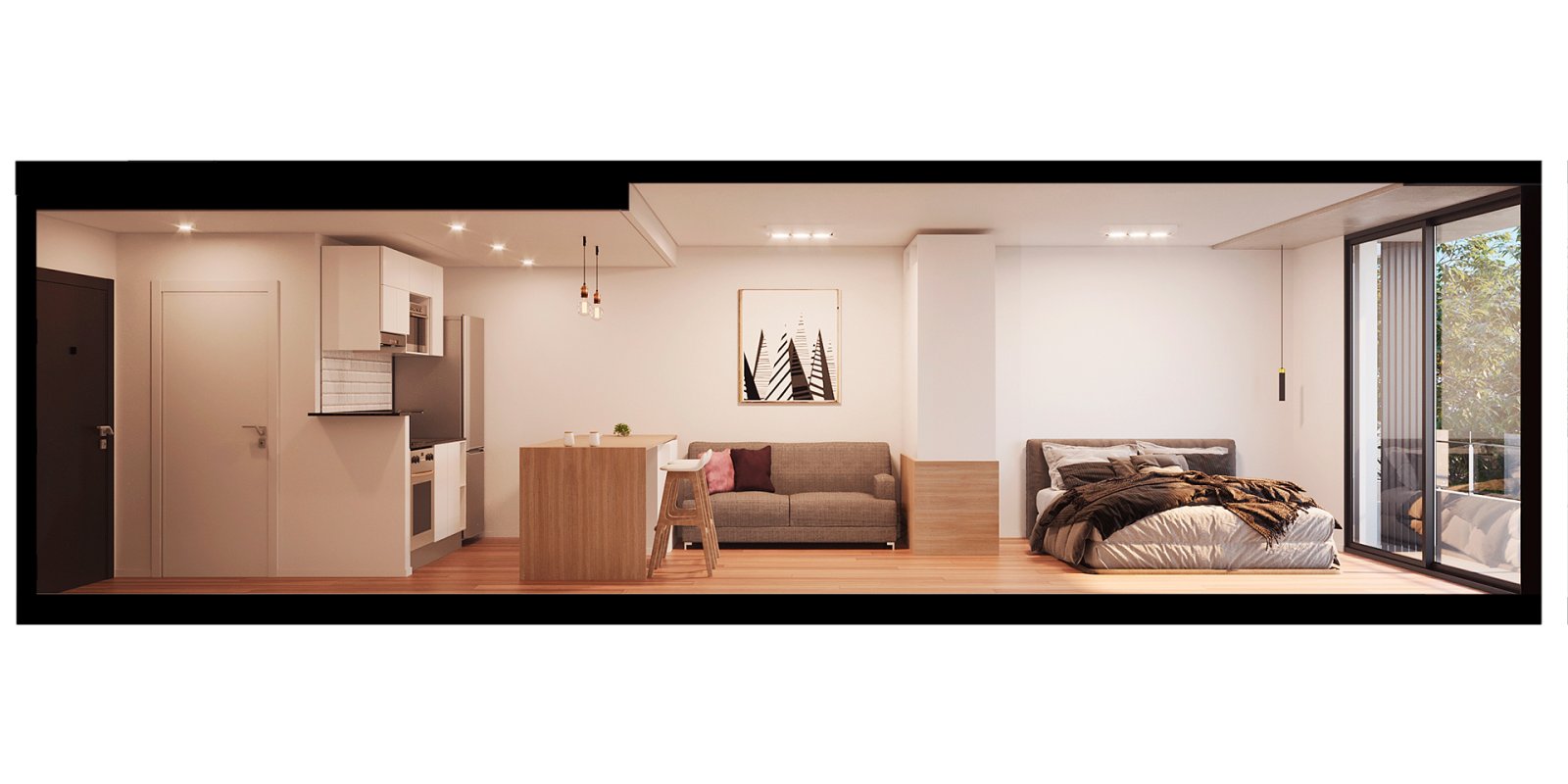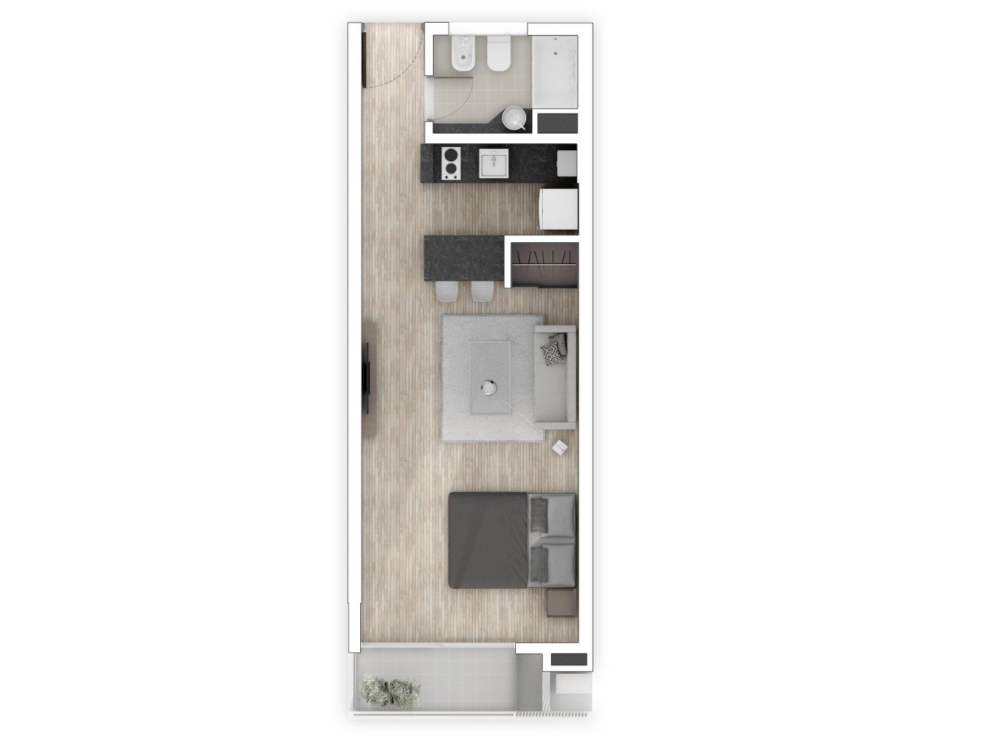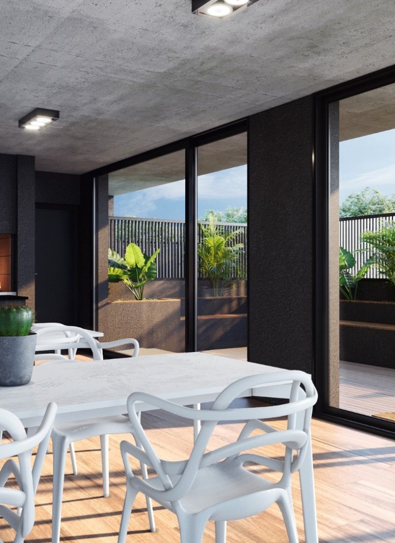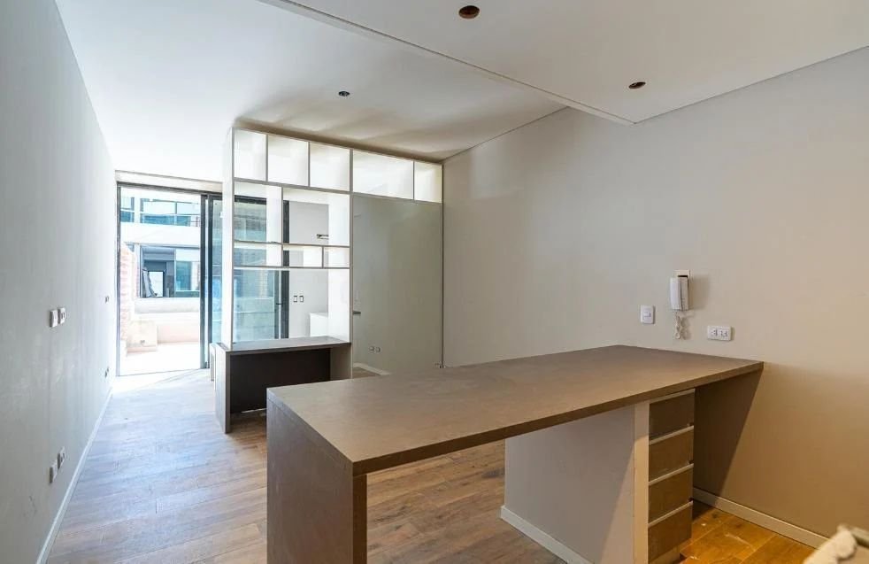 La unidad cuenta con 40m2 de uso exclusivo y se entrega con un estándar constructivo de alta gama, pensado para la durabilidad y el bajo mantenimiento. Dispone de pisos de porcelanato de primera calidad y aberturas de aluminio de alta prestación con Doble Vidrio Hermético (DVH), garantizando aislación térmica y acústica superior. El diseño interior destaca por sus cielorrasos de hormigón visto y una cocina integrada totalmente equipada con alacenas, bajo mesadas de diseño contemporáneo y grifería de primeras marcas, lista para habitar o rentar.