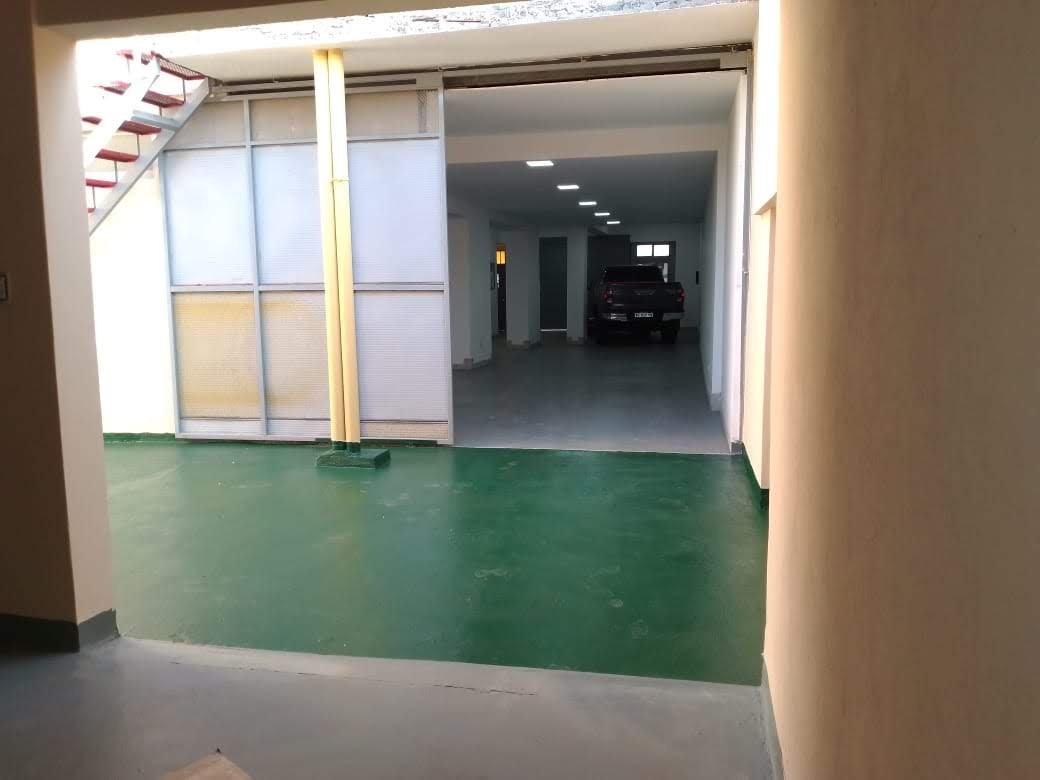 En planta baja, el ingreso se realiza mediante un portón de amplias dimensiones, que conduce a un gran espacio cubierto tipo salón/galpón, con capacidad para 4 camionetas tipo chata y sector adicional de circulación o trabajo.