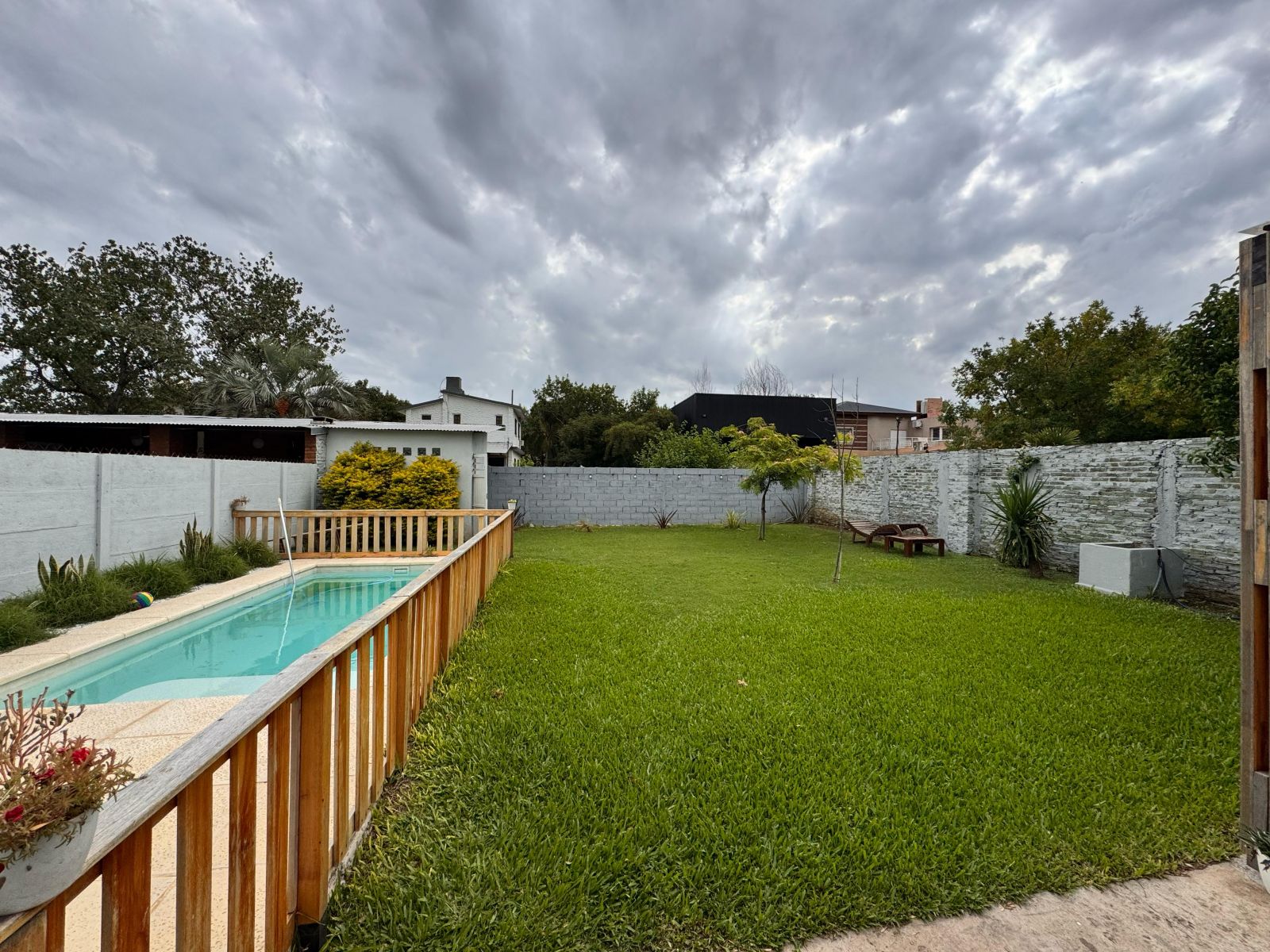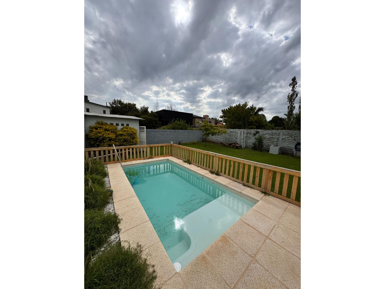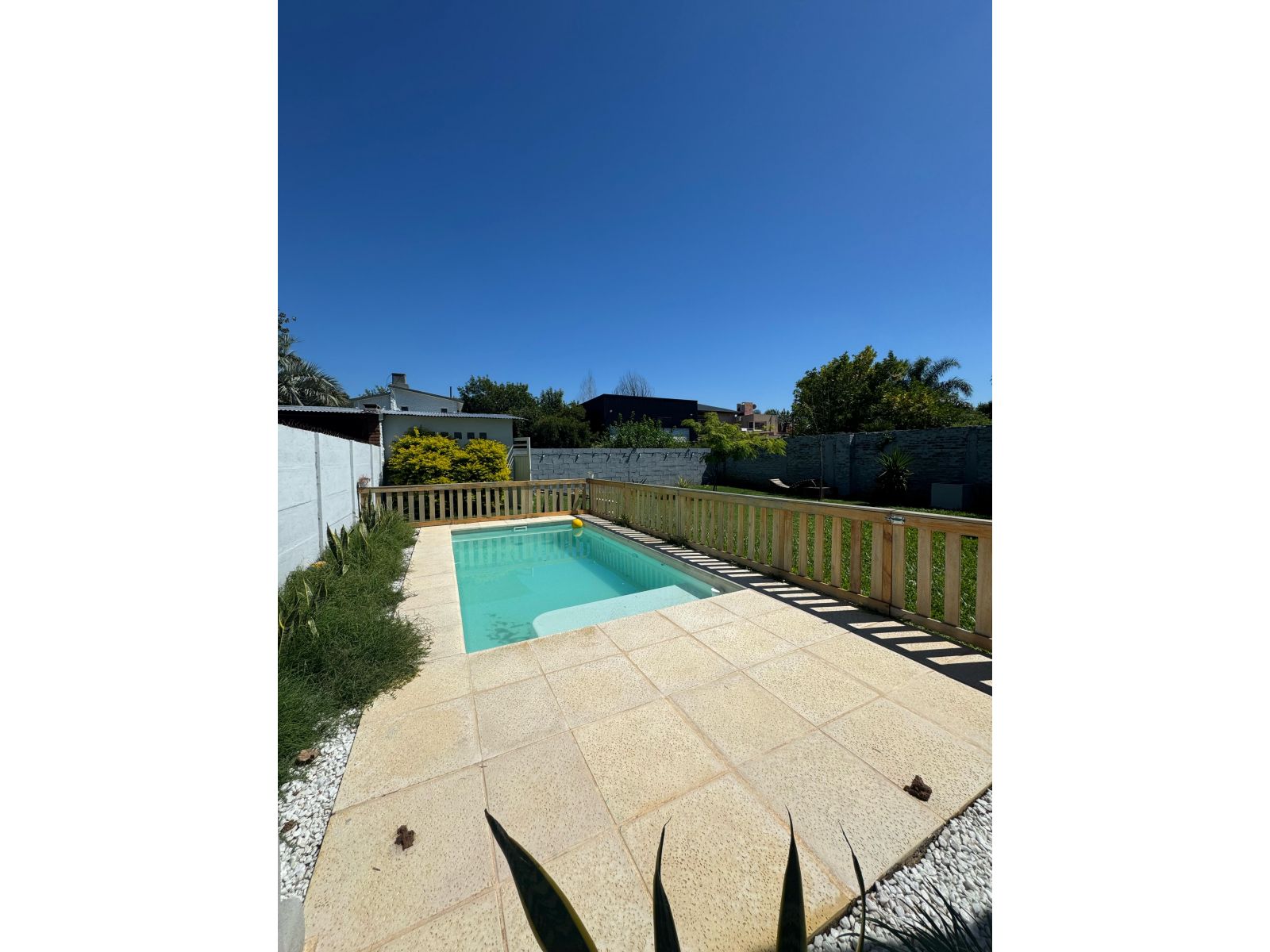 Pileta cercada de 3x6 con pequeño solárium,
